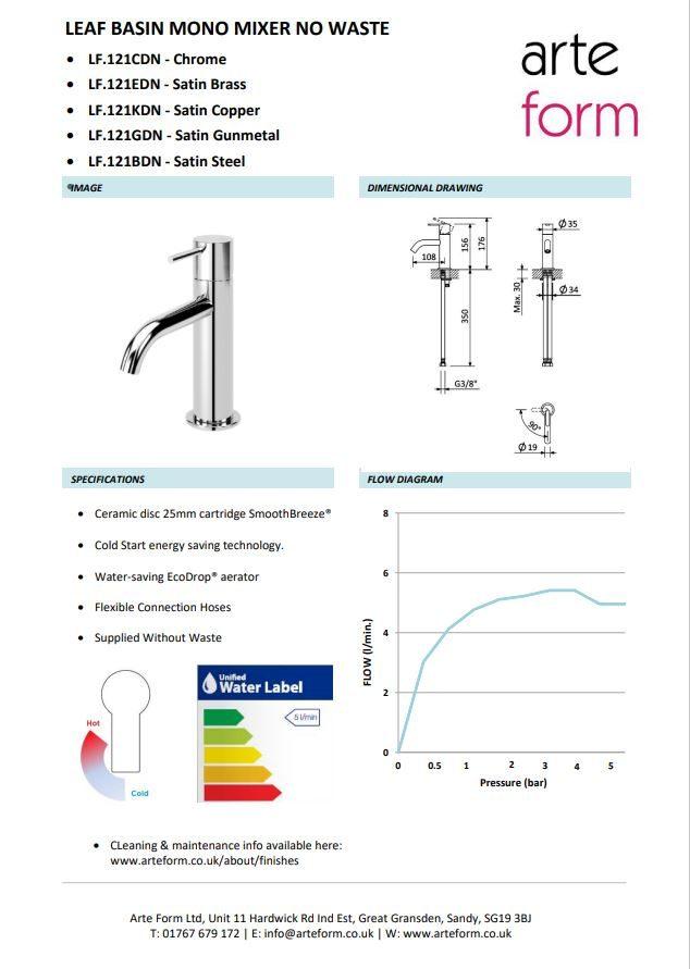 | Finish | Chrome, Satin Brass, Satin Copper, Satin Gunmetal, Satin Steel |