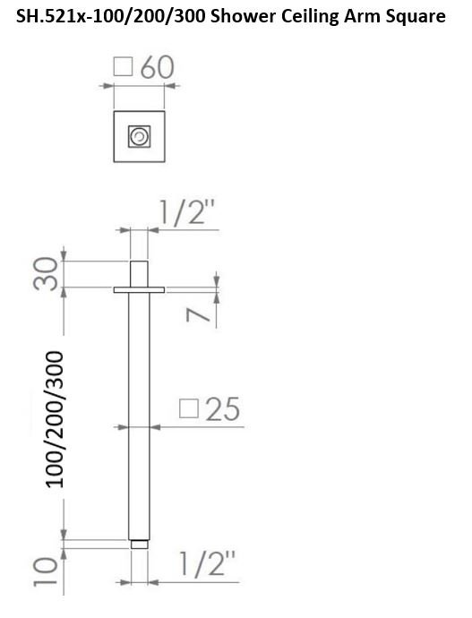 Square Shower Ceiling Arm