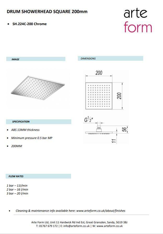 The 200mm fixed square Drum shower head features simple maintenance, thanks to the silicone nozzles – just wipe them to effortlessly to remove any limescale build up. Finished in chrome, this contemporary shower head delivers an impressive, polished look.