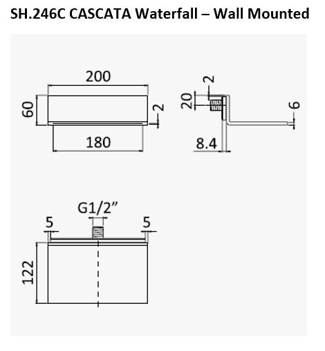The Cascata wall-mounted, slimline shower/bath waterfall filler spout makes a bold design statement for your new bathroom. Rather than a mere trickle, the water flows gracefully across the spout, cascading into the shower below.