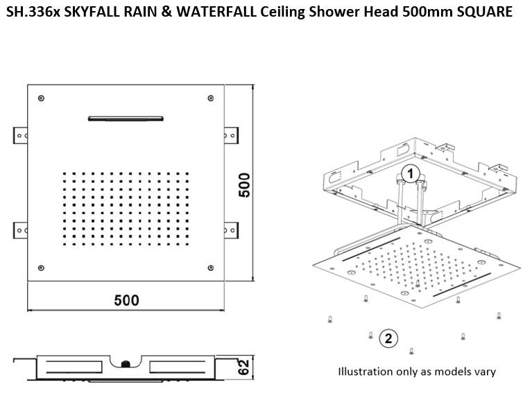 SKYFALL Rain & Waterfall Square Ceiling Head